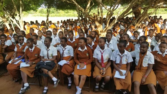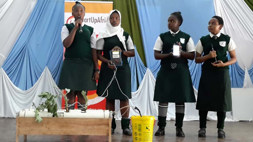 • A section of Kajire Girls listens keenly to Start-Up Africa Executive Director as they prepare for the competition