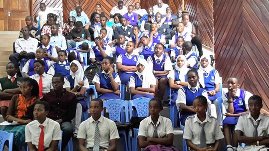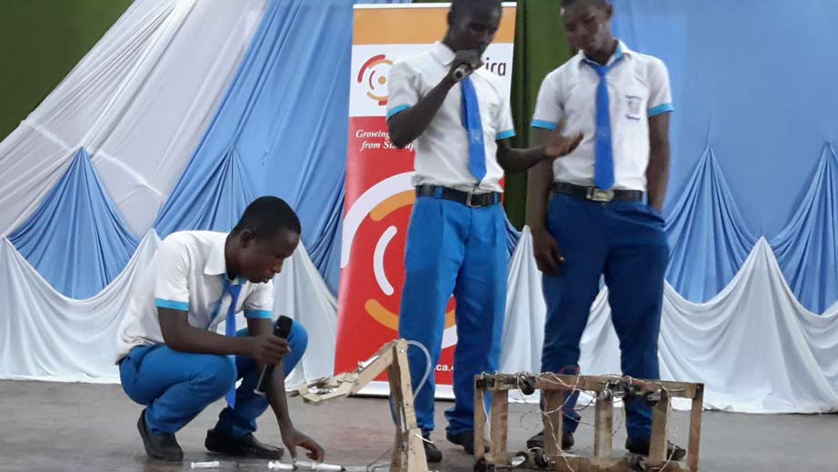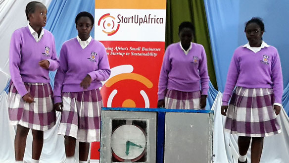 • A section of Kajire Girls listens keenly to Start-Up Africa Executive Director as they prepare for the competition